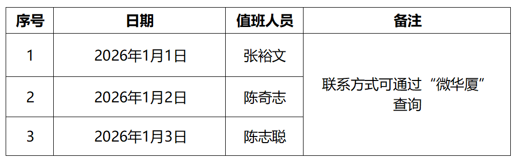 当班人员是假期部门紧急事宜的主要联系处理人员,值班人员请在值班时间保持手机等联系方式畅通,以便能够尽快处理学校校园网故障;如遇突发事件或重大问题应及时向带班领导汇报,按照领导指示处理;如有临时换班,请及时告知部门领导以便有事能及时联系。