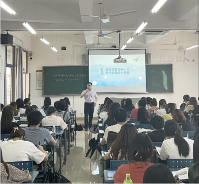 5月27日,校党委书记徐志怀走进思政课堂,以翻转课堂的方式,与学生互动讲授《站在历史正确一边共创祖国统一伟业》的形势与政策课。