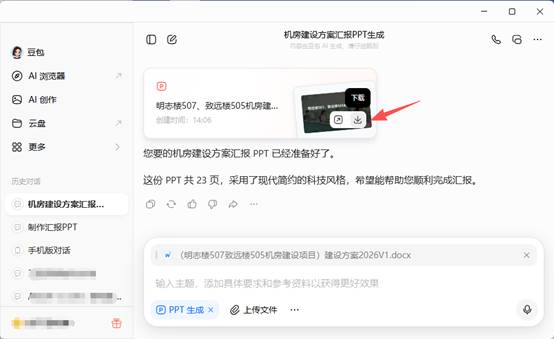 四、 PPT 生成完成后,直接点击下载,保存到电脑即可。